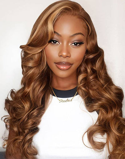 18" 22" Brown Sun-kissed Blonde Wavy 13x4 Lace Front Wig 250% Density Flash Deal