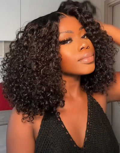 Flash Deal $109.99 14" Curly Thin V Part Bob Wig No Leave-Out
