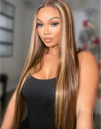 26" 28" Ombre Highlight Ash Blonde Mixed Color Straight Lace Wig Flash Deal