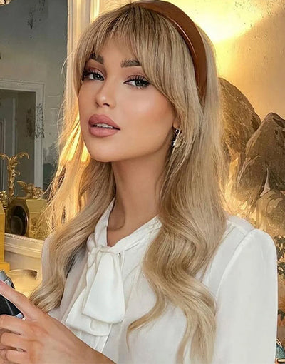 22" Curtain Bangs Ombre Blonde Wavy 13x4 Lace Wig Flash Deal