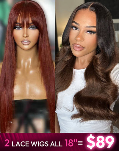 [TWO 18" Wigs $89]#33 Layer Straight 4x4 Wig With Bangs+Ombre Brown Body Wave 5x5 Pre Cut Lace Wig Flash Deal