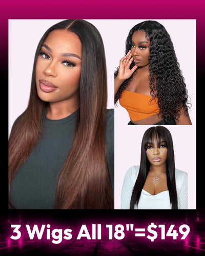 $149=3 Wigs All 18"|Ombre Brown Straight 5x6 Wig+18" Deep Curly 4x4 Wig+18" Straight Wig With Bangs Flash Deal