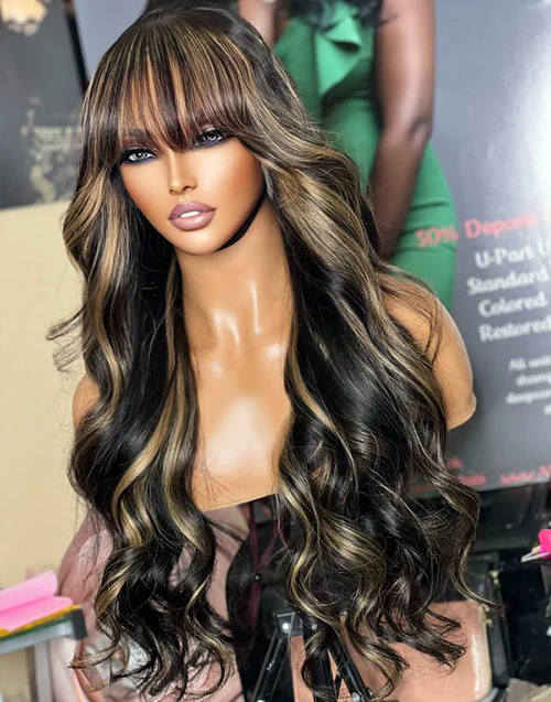 Highlight Blonde Color With Air Bangs haristyle. Ombre Highlight Mixed Color Lace Front Wig with 100% Remy Human Hair. Jessie's Wig offers the most diverse range of human hair wigs anywhere. Try Fashion Ombre Honey Wavy Seamless Wig to give you celebrity-like tresses you deserve in less than 10 minutes.