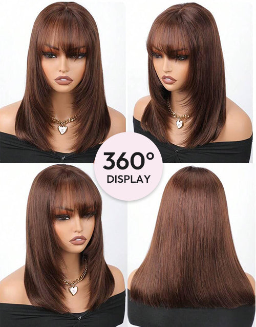 Shake & Go Short Bob With Bangs Human Hair Wigs. Jessie's Wig offers the most diverse range of human hair wigs anywhere. Try Fashion Short Bob Wig,Shopping High Life Luxury Brown Color Layered Bob Straight 5x5 Lace Wigs With Bangs at affordable prices here.