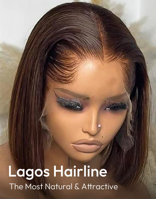 M Lagos Hairline Chocolate Brown Straight Bob Wig 13x5 Pre Cut Lace Front Glueless Wig