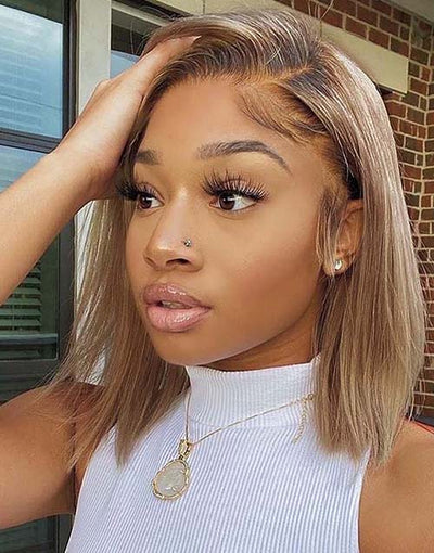 Jessie's Wig Layered bob with a side-swept fringe is a timeless and flattering choice for All Shape faces. The bob’s sleek, Shoulder-length cut frames the face beautifully, while the side-swept fringe adds a softening effect to the overall look. The Ombre honey blonde highlights bring warmth and dimension, creating a bright and youthful appearance. This style is perfect for those who want a polished, easy-to-maintain haircut that’s both professional and stylish. Its simplicity and elegance make it versatile for everyday wear or special occasions!